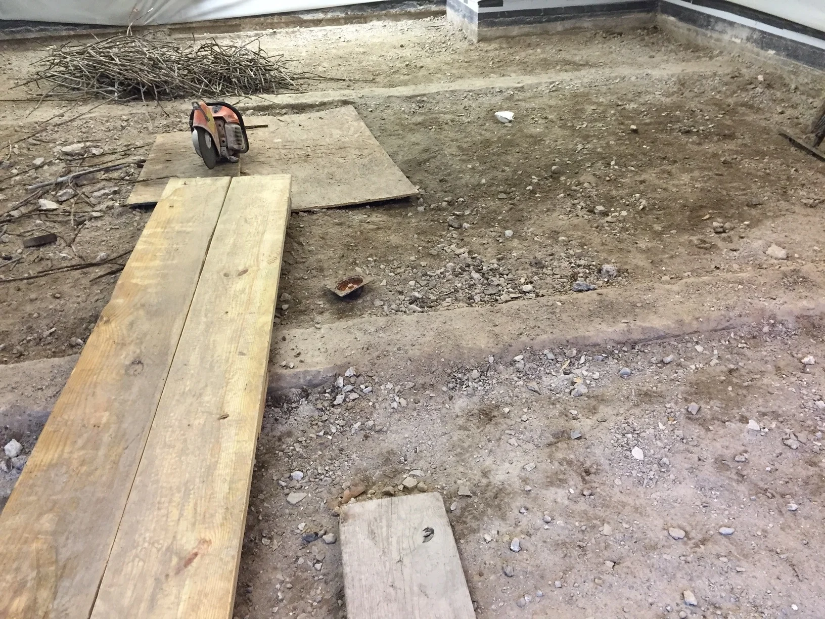 What I wasn’t expecting were two interior foundation walls that go down below the frost line (see below). The guy who built the house did everything beyond overkill! Since I’m re-grading the floor, they will need to be reduced.
