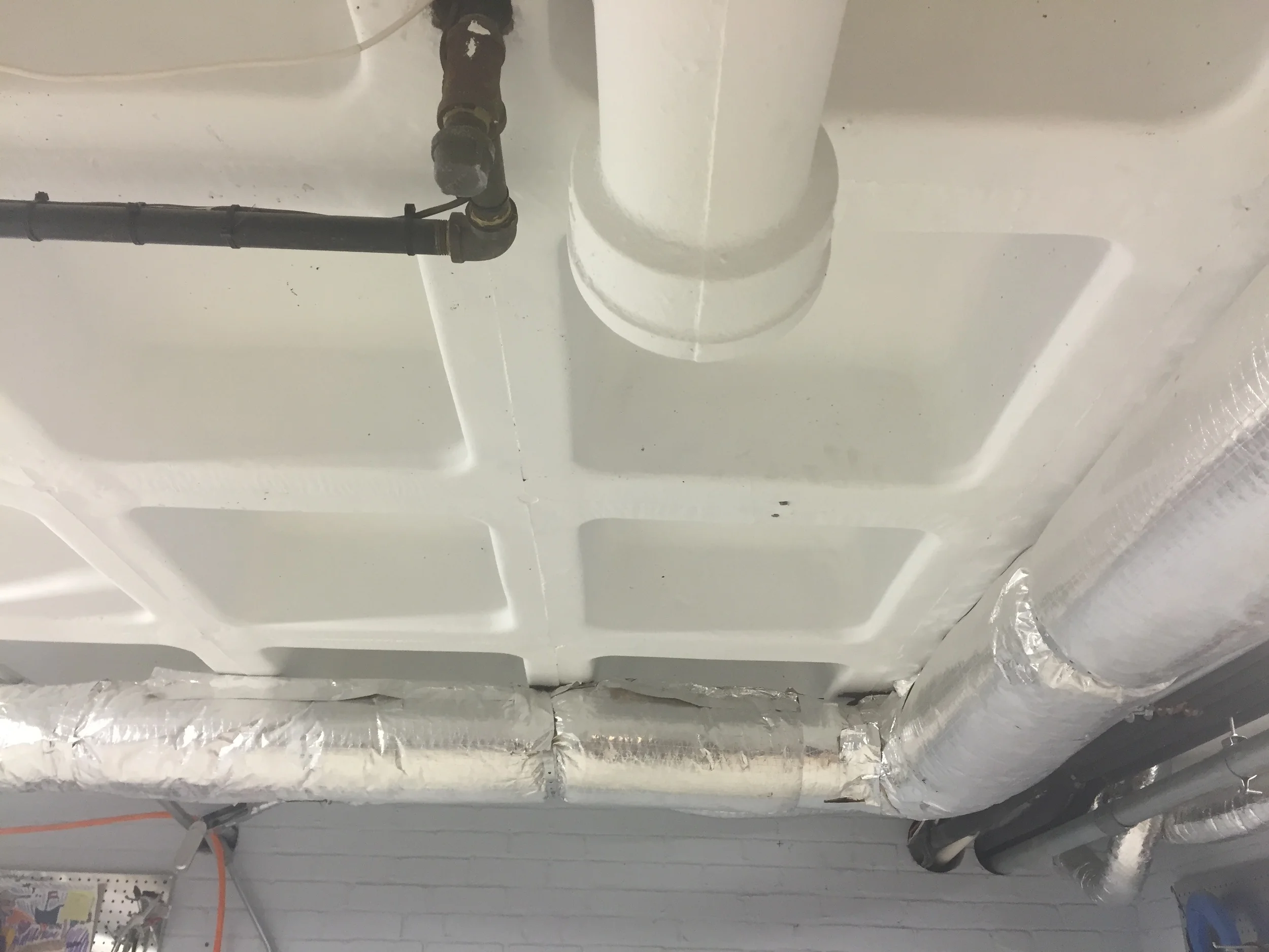 The seams in the membrane were sealed with a special red tape. A form was built and mounted to the stainless steel rods epoxied into the previously poured concrete. Using nuts on the rods the form was leveled to within 1/16” of an inch. Even with multiple people standing on it, it didn’t budge. Rod penetrations were taped and then further sealed with liquid membrane.