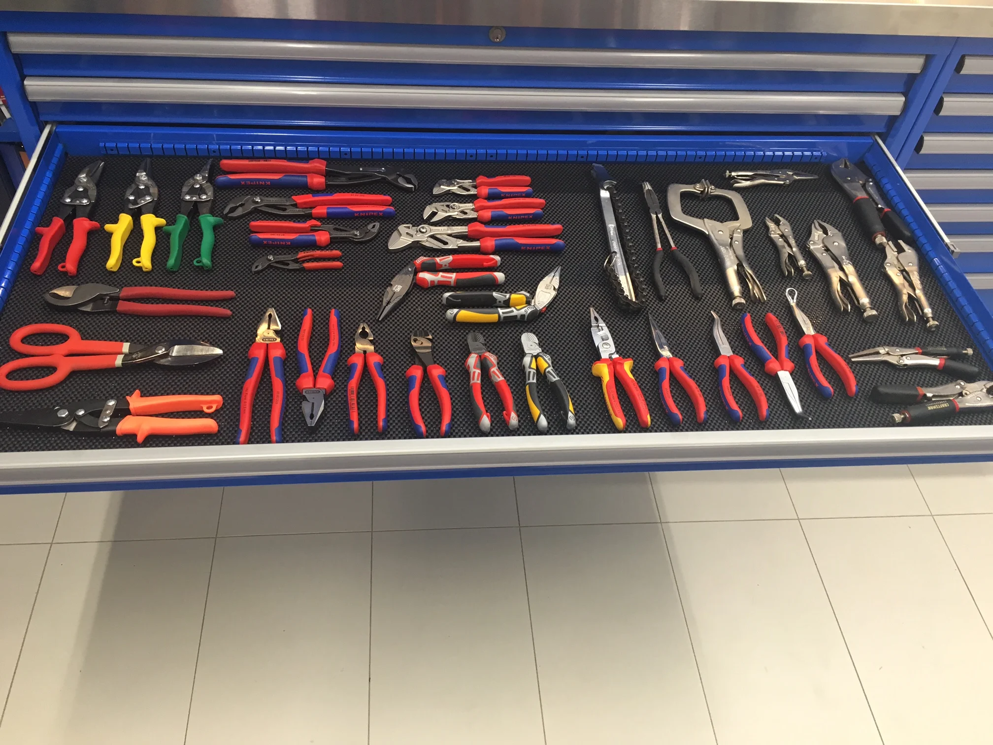 The plastics bins from Shaller are great to keep parts and tools organized. The picture below is the SAE 18-8 stainless fasteners. There is another full size drawer for metric -- I sure as hell wish we had converted to metric. The neat labels on white paper were done by my daughter. I need her to finish the rest of drawers.